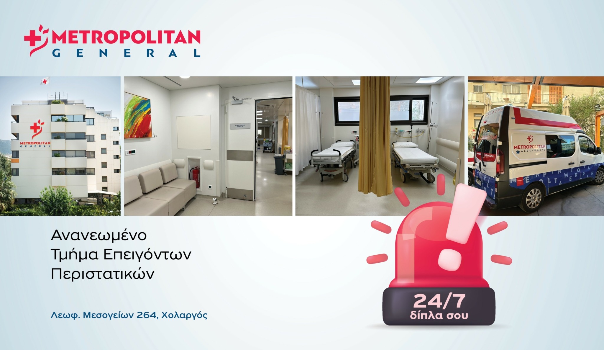 *Το Metropolitan General βρίσκεται στη Λεωφόρο Μεσογείων 264, στο Χολαργό Αττικής. Τηλ. Επικοινωνίας: 210 650 2000, www.metropolitan-general.gr