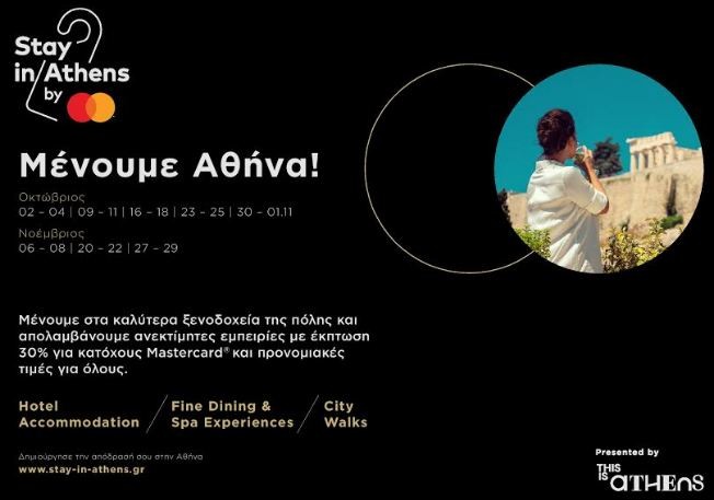 Επεκτείνει τις στρατηγικές συνεργασίες για την ενίσχυση του ελληνικού τουρισμού η Mastercard, τώρα μέσω του «Stay in Athens» υπό την αιγίδα του This is Athens του Δήμου Αθηναίων με στόχο, αυτή τη φορά, την προώθηση της Αθήνας ως κορυφαίο citybreak προορισμό.
