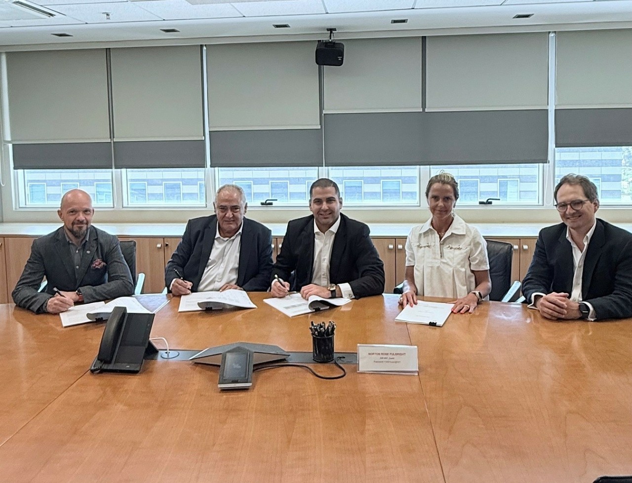 Κεντρική φωτό κειμένου (από τα αριστερά προς τα δεξιά): Igor Rusinowski – CEO Unilink/Acrisure CEE, Ιωάννης Χατζηθεοδοσίου – Πρόεδρος Mega Brokers, Αναστάσιος Χατζηθεοδοσίου – Διευθύνων Σύμβουλος Mega Brokers, Aleksandra Friedel – CEO Unilink Poland, Alex England – Director International M&A Acrisure: