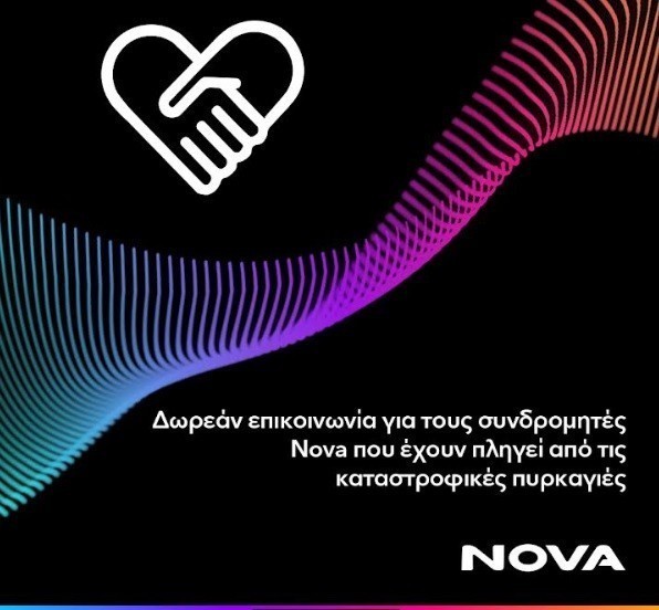Η Nova, μέλος της United Group, του κορυφαίου παρόχου τηλεπικοινωνιών και media στη Νοτιοανατολική Ευρώπη, κατανοώντας τις αυξημένες ανάγκες επικοινωνίας στις περιοχές που έχουν πληγεί από τις καταστροφικές πυρκαγιές, ενημερώνει τους συνδρομητές της ότι βρίσκεται κοντά τους με δωρεάν υπηρεσίες επικοινωνίας.
