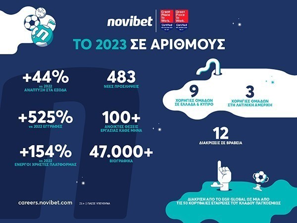 Η Novibet κατέγραψε εντός του 2023 ρεκόρ εγγραφών νέων χρηστών στην πλατφόρμα σε όλες τις χώρες δραστηριοποίησης και υπερδιπλασιασμό των ενεργών χρηστών σε σχέση με το 2022.
