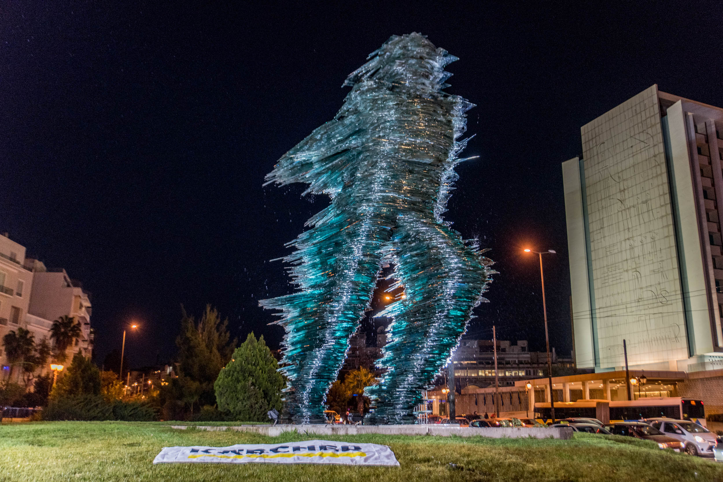 Το εντυπωσιακό γλυπτό του Έλληνα καλλιτέχνη Κώστα Βαρώτσου – τον οποίο ευχαριστεί η Kärcher Greece για την εμπιστοσύνη του όλα αυτά τα χρόνια – απαιτεί μεγάλη προσοχή κατά τον καθαρισμό του, δεδομένου του υλικού κατασκευής του, που έχει προσβληθεί από καυσαέρια και ρύπους. Οι γυάλινες πλάκες του γλυπτού είναι εξαιρετικά εύθραυστες, με αποτέλεσμα να μπορούν να καθαριστούν μόνο εξ αποστάσεως, καθιστώντας την χρήση κλασικών μεθόδων αδύνατη.