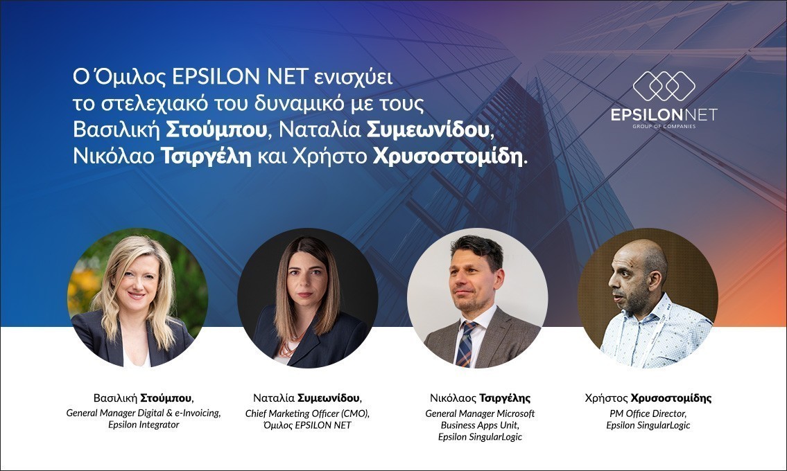 Σε μία περίοδο γεμάτη με πολύ ενδιαφέρουσες προκλήσεις για τη βιομηχανία της Πληροφορικής στην Ελλάδα, ο Όμιλος της EPSILON NET εντάσσει 4 νέα σημαντικά στελέχη στο ανθρώπινο δυναμικό του.