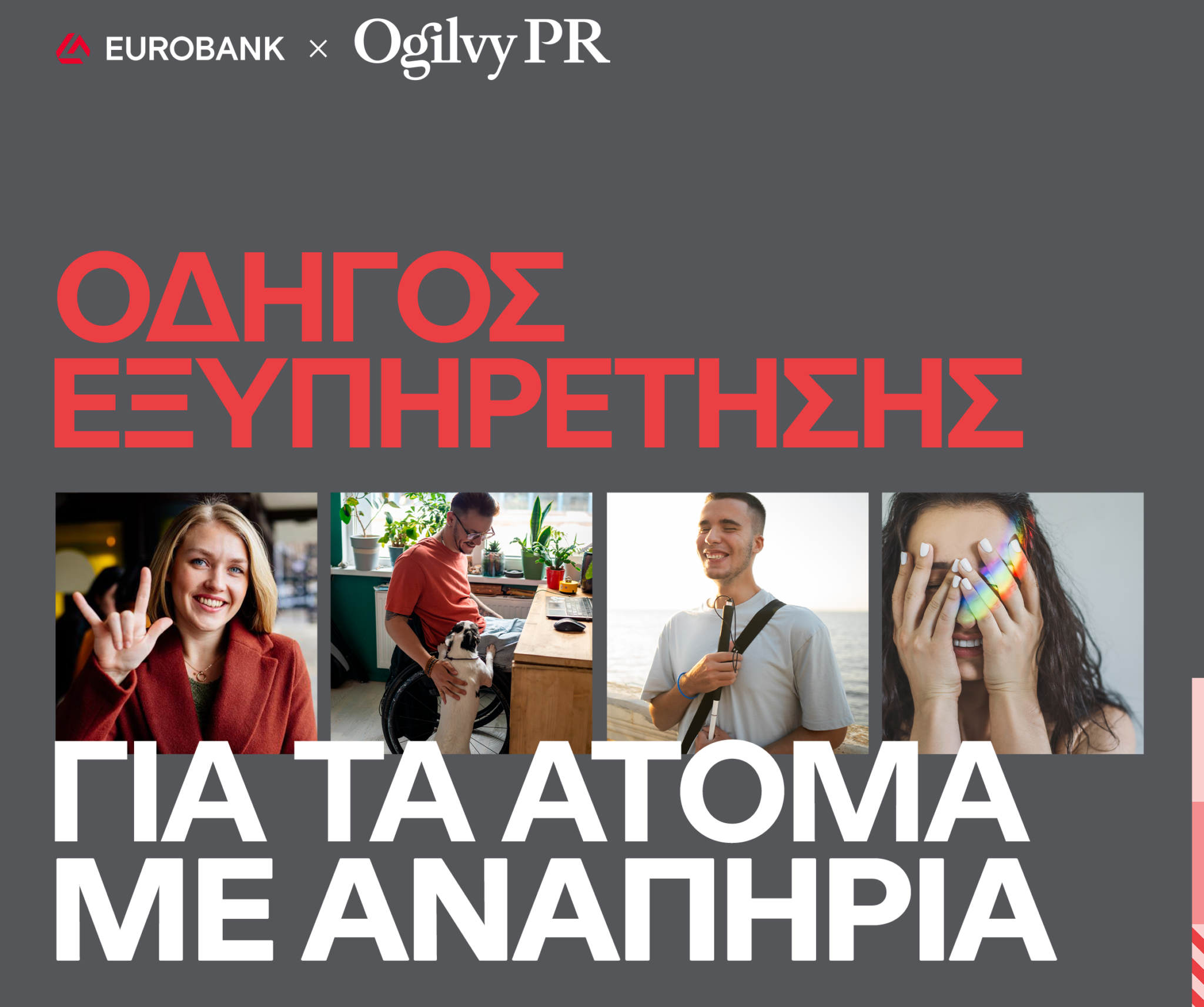 Η Ogilvy PR, για λογαριασμό της Eurobank παρουσιάζει τον Οδηγό Εξυπηρέτησης για τα άτομα με αναπηρία. Πρόκειται για ένα ψηφιακό έντυπο, που περιγράφει τους τρόπους εξυπηρέτησης των ατόμων με αναπηρία μέσω των φυσικών και ψηφιακών καναλιών της Eurobank.