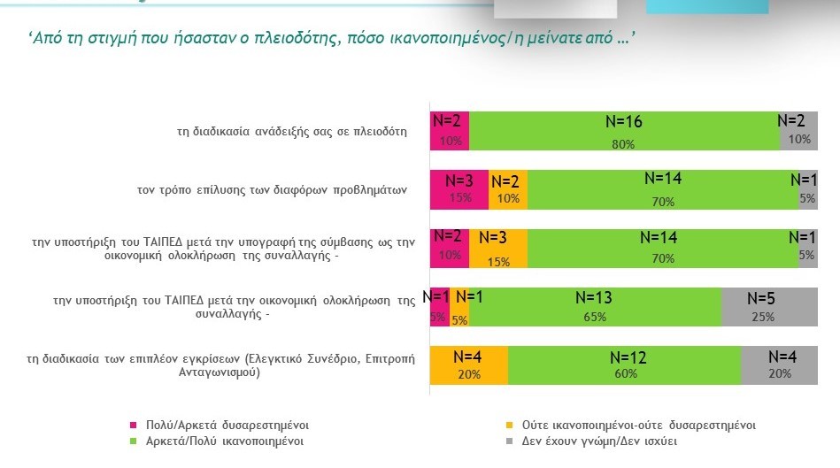 · Στο δεύτερο στάδιο της διαδικασίας και αφού ανακηρύχθηκαν οι πλειοδότες, η ικανοποίηση από τη διαδικασία ανάδειξης τους παρέμεινε σε υψηλά επίπεδα (ισοζύγιο ικανοποίησης +70%).