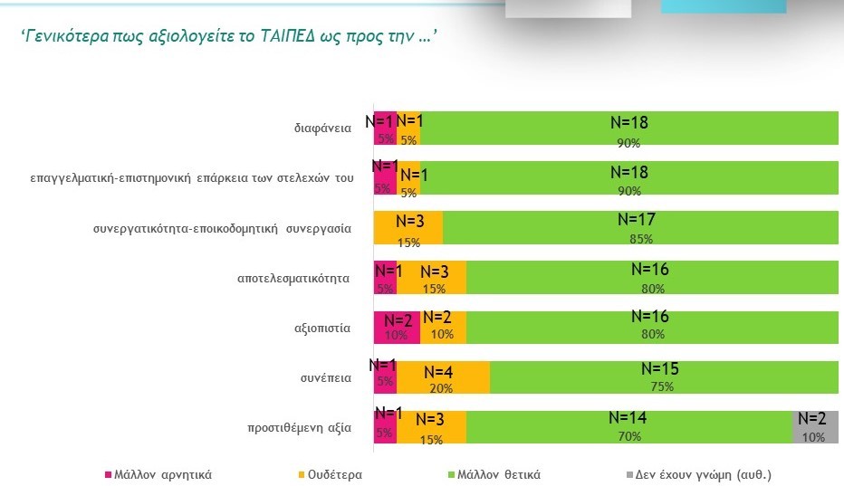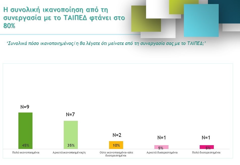 Μετά από την ανάκληση όλης της εμπειρίας της συνεργασίας, ετέθη ξανά η ερώτηση της συνολικής αξιολόγησης του ΤΑΙΠΕΔ. Αυτή τη φορά η συνολική ικανοποίηση ανήλθε στο 90%.
