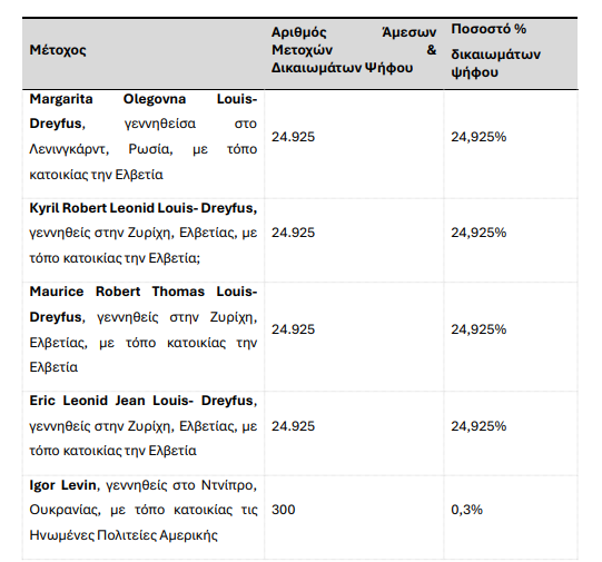 Μοναδικοί μέτοχοι του Προτείνοντος είναι οι εξής: