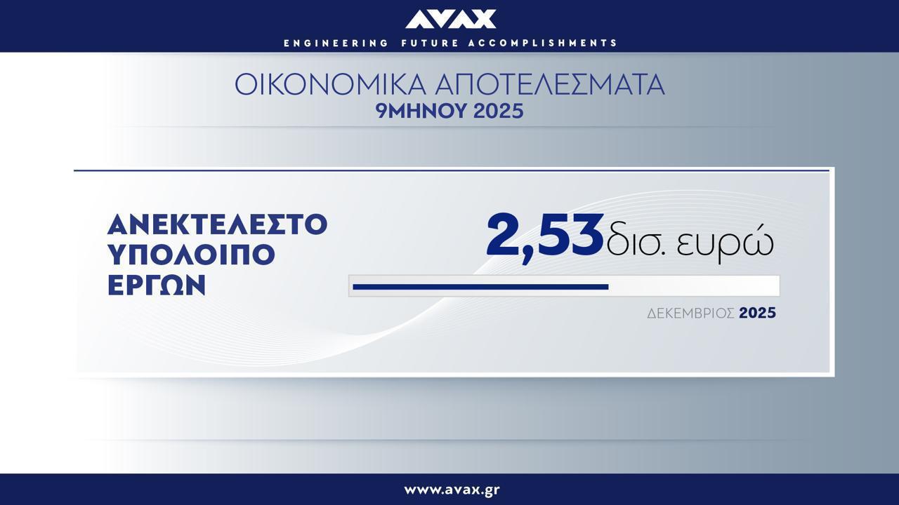 Oυσιαστική βελτίωση έναντι της συγκρίσιμης περιόδου του προηγούμενου έτους παρουσιάζουν τα οικονομικά αποτελέσματα για το εννεάμηνο 2025 του Ομίλου ΑΒΑΞ, προσεγγίζοντας ή και υπερβαίνοντας σε ορισμένες περιπτώσεις τα μεγέθη ολόκληρου του 2024, σύμφωνα με την ανακοίνωση.