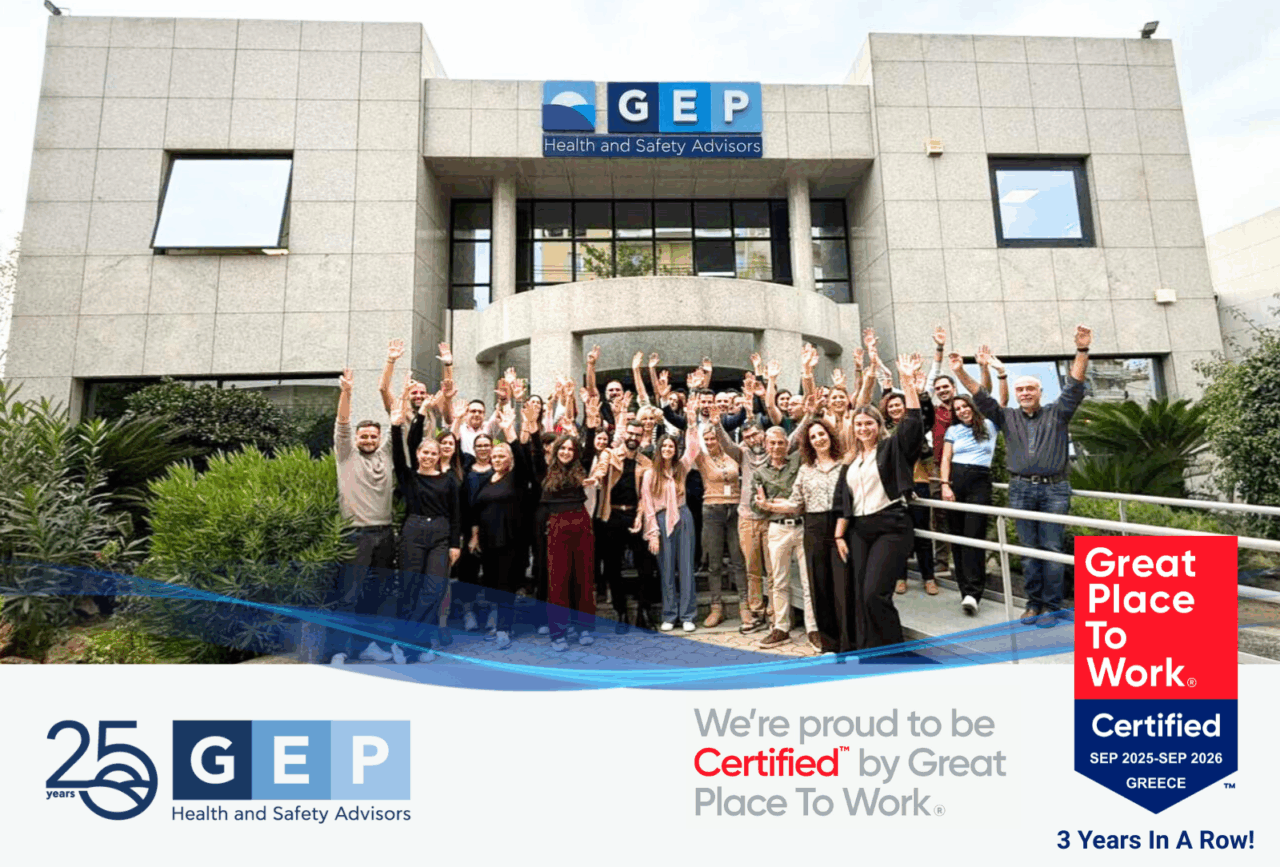 Η GEP, η οποία δραστηριοποιείται στον κλάδο της Υγείας και Ασφάλειας, ανακοινώνει ότι για τρίτη συνεχόμενη χρονιά απέκτησε την Πιστοποίηση του Great Work™.