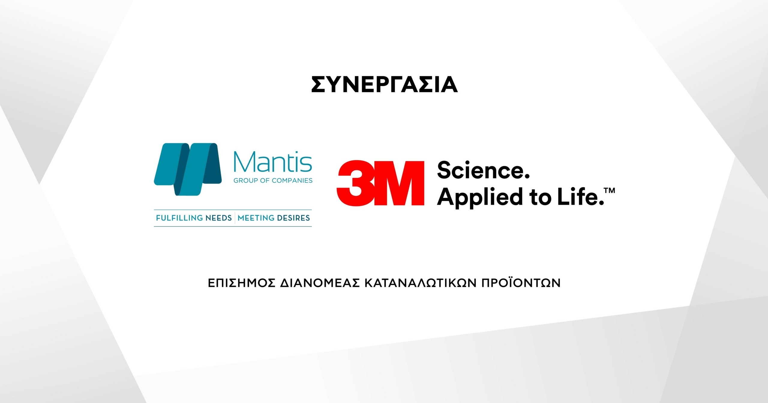 Ο Όμιλος Εταιρειών Mantis, στο πλαίσιο της στρατηγικής ανάπτυξης των επιχειρηματικών και επενδυτικών του δραστηριοτήτων, ανακοινώνει τη συνεργασία του με την εταιρεία 3Μ ως επίσημος διανομέας των Καταναλωτικών Προϊόντων της στην Ελλάδα και την Κύπρο για το κανάλι του λιανεμπορίου και του D.I.Y. καναλιού, ενισχύοντας το χαρτοφυλάκιό του στην κατηγορία προϊόντων Οικιακής χρήσης και Προσωπικής Φροντίδας.