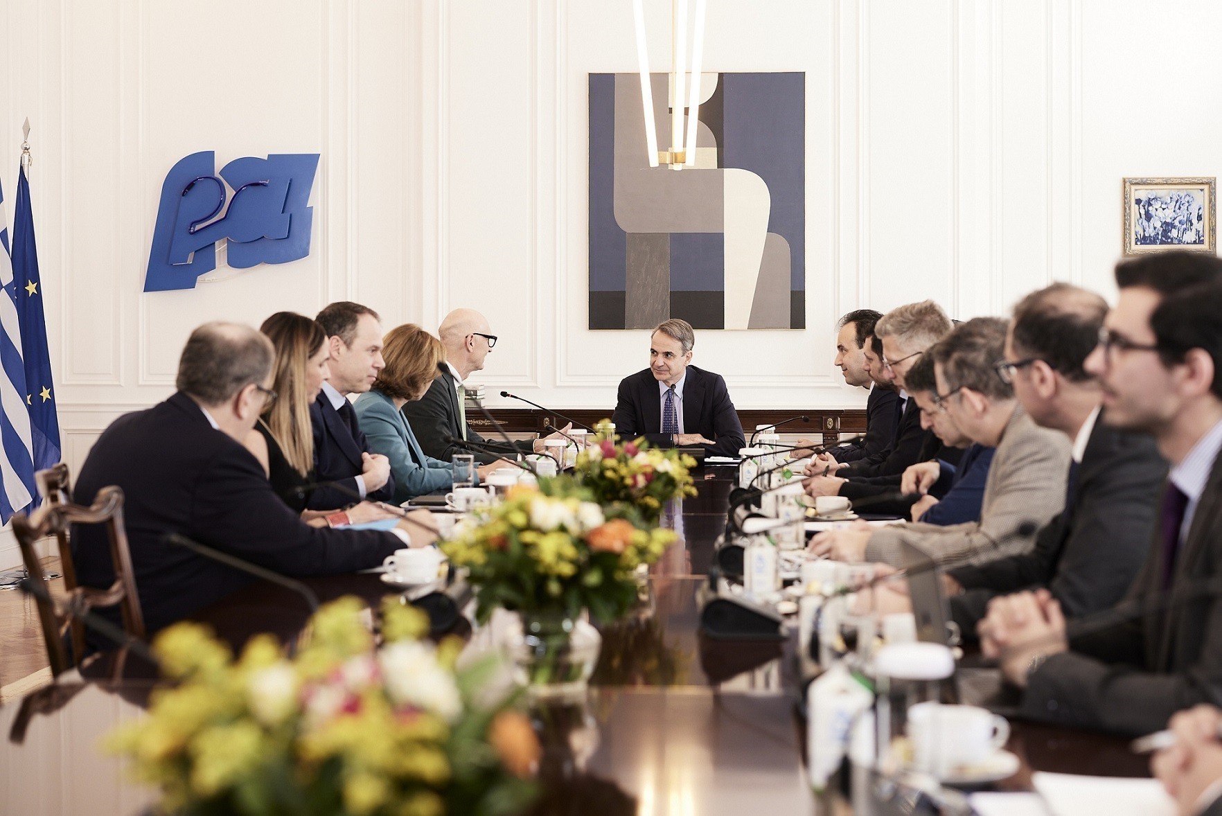 Στην έναρξη της συνάντησης, ο πρωθυπουργός δήλωσε, μεταξύ άλλων: «Είναι μεγάλη μου χαρά που σας καλωσορίζω και πάλι. Χαίρομαι που η Telekom, μέσω του ΟΤΕ, συμμετέχει στην επιτυχημένη πορεία της χώρας όσον αφορά στην ψηφιοποίηση και τη συνδεσιμότητα (…). Έχουμε εξαιρετική επικοινωνία με τη νέα σας διοικητική ομάδα και με ενδιαφέρουν ιδιαίτερα τα θέματα συνδεσιμότητας, ιδιαίτερα το πρόγραμμα “Fiber to the Home”, μέσω του οποίου ελπίζω ότι θα ανέλθουμε σε 2,5 χρόνια στην πρώτη κατηγορία των ευρωπαϊκών χωρών σε ό,τι αφορά τη συνδεσιμότητα».