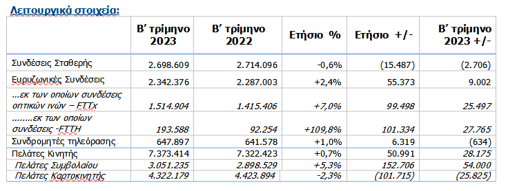 Είμαστε ιδιαίτερα ικανοποιημένοι με την αύξηση των πελατών FTTH, με το ποσοστό διείσδυσης να έχει διπλασιαστεί σε σχέση με έναν χρόνο πριν, και μάλιστα με αυξημένη διαθεσιμότητα του δικτύου. Σε ένα πιο σταθερό μακροοικονομικό περιβάλλον, αναμένουμε ότι οι τάσεις που καταγράφηκαν κατά τα πρώτα τρίμηνα του έτους θα συνεχισθούν και στο δεύτερο εξάμηνο. Συνεχίζουμε την αυστηρή διαχείριση του κόστους για να διατηρήσουμε την κερδοφορία μας και να ανταποκριθούμε στις δεσμεύσεις μας».