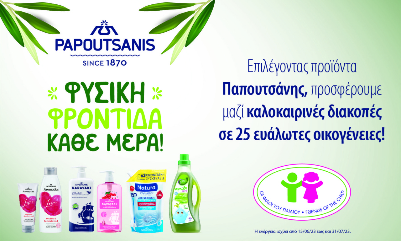 Η εταιρεία Παπουτσάνης ενώνει και φέτος τις δυνάμεις της με το Φιλανθρωπικό Σωματείο «Οι Φίλοι του Παιδιού», προσφέροντας καλοκαιρινές διακοπές σε 25 ευάλωτες οικογένειες.