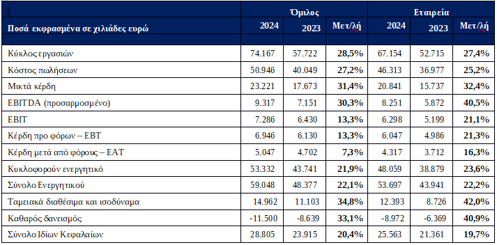 Eιδικότερα, ο Όμιλος εκπλήρωσε όλους τους στόχους του για το 2024, πετυχαίνοντας: