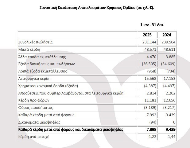 Παρά τις προκλήσεις, πληθωριστικές, γεωπολιτικές και ψηφιακές, καταφέραμε να διατηρήσουμε ισχυρές βάσεις, να ενισχύσουμε την λειτουργική μας αποτελεσματικότητα και να προχωρήσουμε στην υλοποίηση του επενδυτικού μας πλάνου. Τα οικονομικά αποτελέσματα του 2025 επιβεβαιώνουν τη δυναμική, την ανθεκτικότητα και τη στρατηγική συνέπεια του Ομίλου.