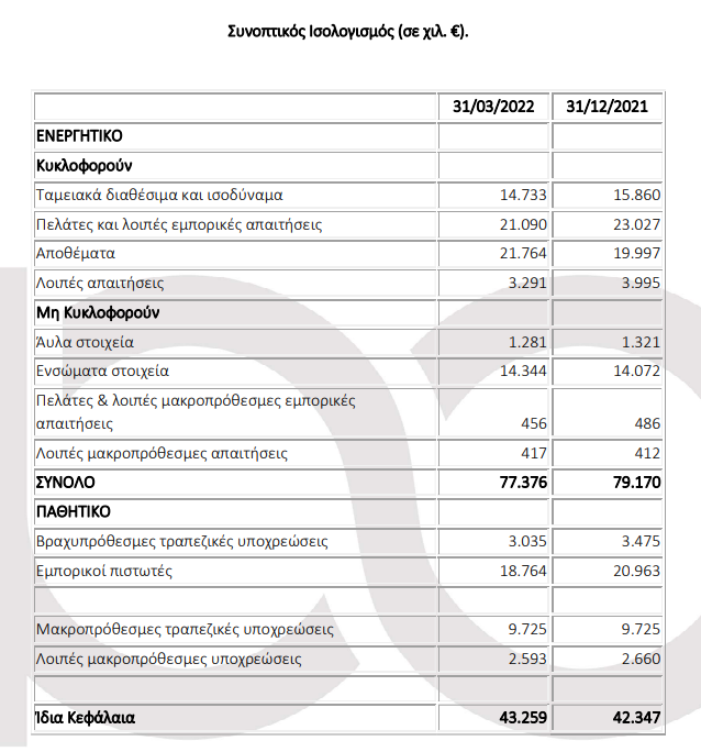 Οι πωλήσεις του Ομίλου αυξήθηκαν κατά 10% και ανήλθαν σε €31,9εκ (€29 εκ. το 2021). Το ΕΒΙTDA του Ομίλου ανήλθε σε €1,6εκ έναντι €2,8εκ το 2021.