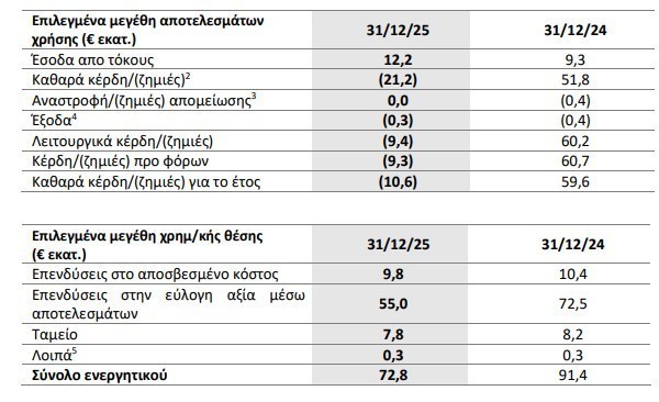 Το 2025 η Εταιρεία κατέγραψε ζημιές από χρηματοοικονομικά μέσα που αποτιμώνται σε εύλογη αξία μέσω των αποτελεσμάτων και από αναπροσαρμογές σε επενδύσεις στο αποσβεσμένο κόστος, ύψους €21,2 εκατ.. Η μείωση της εύλογης αξίας των χρηματοοικονομικών περιουσιακών στοιχείων που αποτιμώνται στην εύλογη αξία μέσω αποτελεσμάτων και σε αποσβεσμένο κόστος κατά το τρέχον έτος, οφείλεται κυρίως σε προσαρμογές των εκτιμώμενων μελλοντικών ταμειακών ροών των ομολογιών, προεκβάλλοντας τα πραγματικά ποσοστά εισπραξιμότητας έως σήμερα, για τα οποία δεν αναμένεται αύξηση στο προσεχές μέλλον λαμβάνοντας υπόψη τις τελευταίες εξελίξεις.