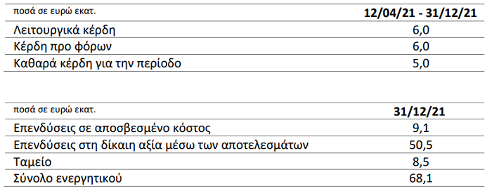 Τα βασικά μεγέθη της Εταιρείας για το οικονομικό έτος 2021 παρουσιάζονται στον παρακάτω πίνακα: