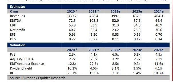 Παρά τις προκλήσεις της συγκυρίας η χρηματιστηριακή εκτιμά ότι οι μεσοπρόθεσμες προοπτικές της Πλαστικά Θράκης παραμένουν ακέραιες, στηριζόμενες στην ισχυρή θέση στην αγορά, τα υγιή περιθώρια κέρδους και τις επενδύσεις που βρίσκονται σε εξέλιξη. Περιμένει δε ότι τα EBITDA θα κινηθούν στη ζώνη των 57-64 εκατ. ευρώ το 2023-24, σχεδόν διπλάσια από αυτά του 2019.