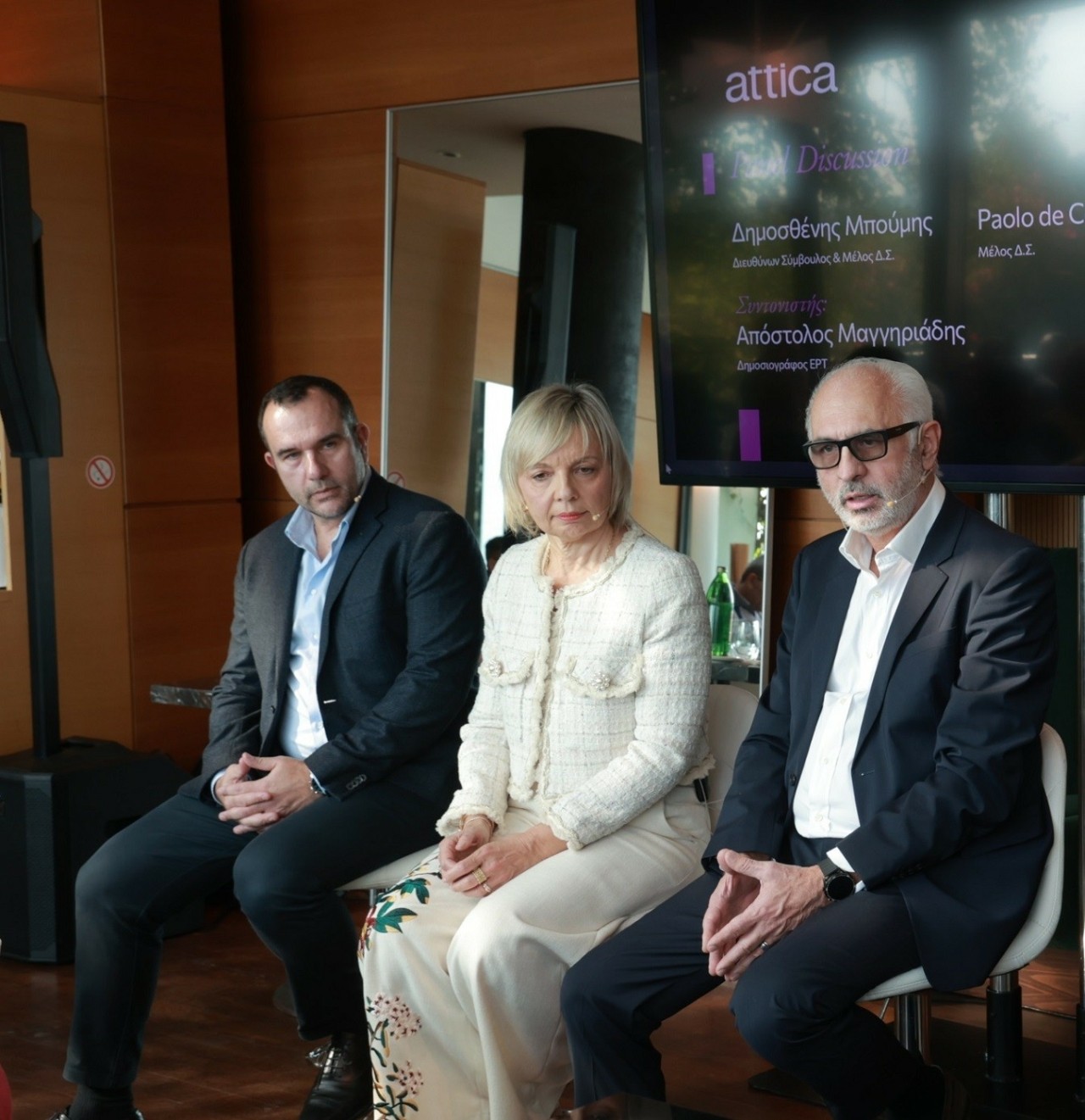 Στην κεντρική φωτογραφία: (Από αριστερά προς δεξιά) Δημοσθένης Μπούμης, Διευθύνων Σύμβουλος και μέλος Δ.Σ., Florence Rollet, μέλος Δ.Σ., Paolo de Cesare, μέλος Δ.Σ., Πολυκαταστήματα attica