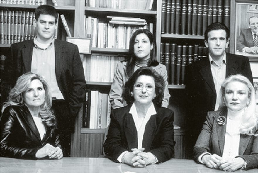 Από αριστερά, η κυρία Αγγέλα Αθανασιάδου-Κοντογούρη, η κυρία Μαριέττα Αθανασιάδου και η κυρία Ειρήνη Αθανασιάδου. Ορθιοι από αριστερά, ο κ.Τζώρτζης Κοντογούρης, γιος της Αγγέλας, η κυρία Ελένη Φαλκονάκη, κόρη της Μαριέττας, και ο κ. Πάνος Ράπτης, γιος της Ειρήνης