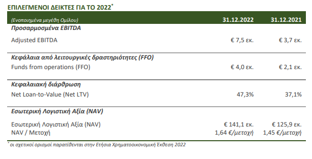 – Προσθήκη συνολικά είκοσι τριών (23) νέων ακινήτων, με γνώμονα τη βελτιστοποίηση της σύνθεσης και διαφοροποίηση του χαρτοφυλακίου επενδύσεων του Ομίλου. Κατά την 31.12.2022 ο Όμιλος είχε υπό διαχείριση 50 ακίνητα με τη συνολική αξία επενδύσεων να διαμορφώνεται σε € 272,6 εκ., αυξημένη κατά 37% σε σχέση με το 2021.