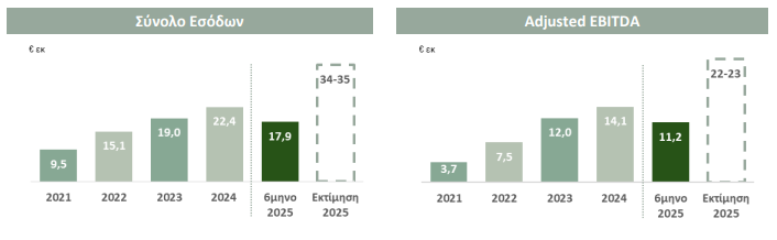 Αύξηση εσόδων κατά 86% και αύξηση λειτουργικής κερδοφορίας (Adjusted EBITDA) κατά 109%, σε ενοποιημένη βάση, σε σχέση με την αντίστοιχη περίοδο 2024. Τα κέρδη προ φόρων διαμορφώθηκαν σε χαμηλότερα επίπεδα σε σχέση με το πρώτο εξάμηνο 2024, ως αποτέλεσμα των χαμηλότερων κερδών από αναπροσαρμογή επενδυτικών ακινήτων σε εύλογες αξίες.