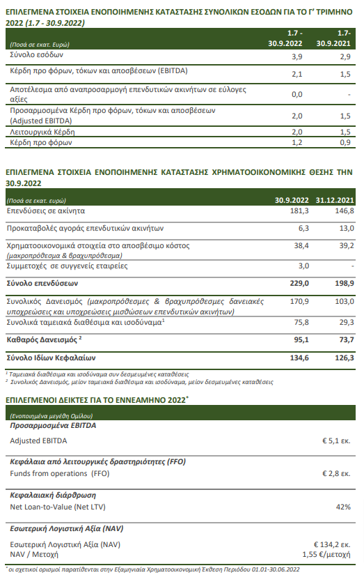 Αναλυτικά, η ανακοίνωση με τα οικονομικά αποτελέσματα της περιόδου από 1 Ιανουαρίου έως 30 Σεπτεμβρίου 2022: