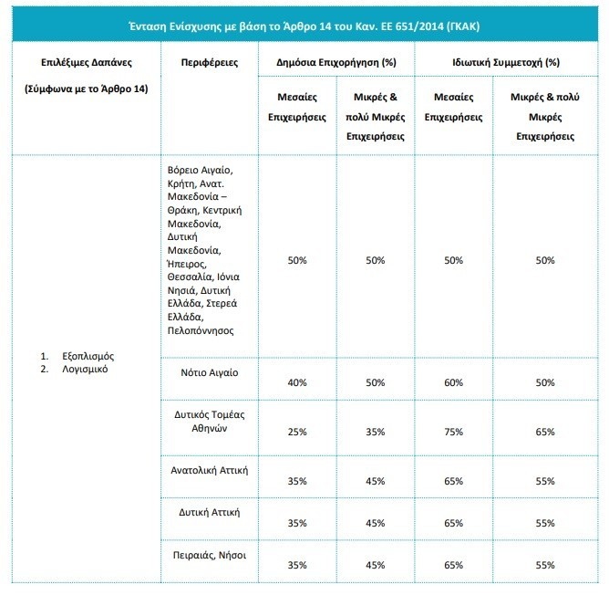 Οι βασικές κατηγορίες δαπανών που καλύπτονται είναι οι εξής: