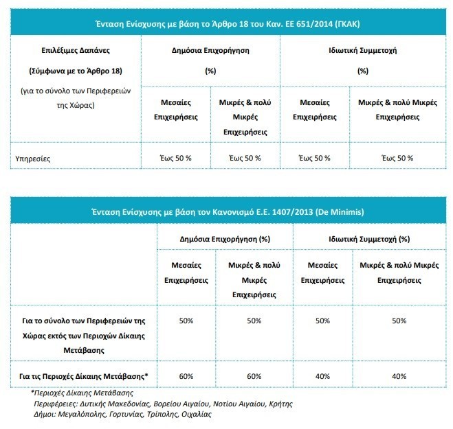 Οι βασικές κατηγορίες δαπανών που καλύπτονται αφορούν σε: