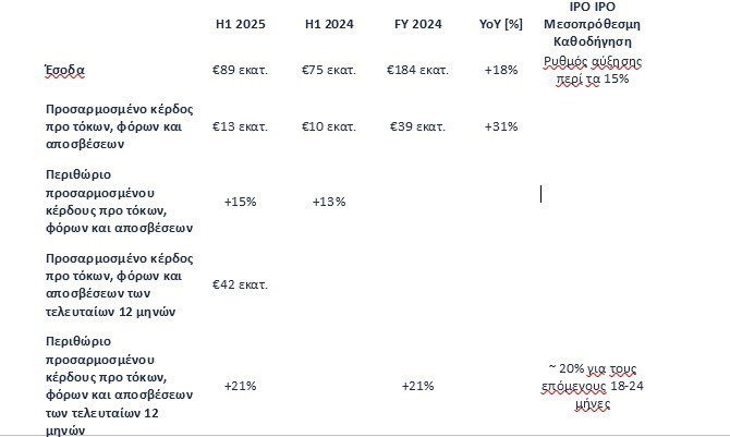 Τα προσαρμοσμένα κέρδη προ φόρων, τόκων και αποσβέσεων για το πρώτο εξάμηνο του 2025, ύψους 13 εκατομμυρίων ευρώ, αυξήθηκαν κατά 31% συγκριτικά με το προηγούμενο έτος για την ίδια περίοδο.
