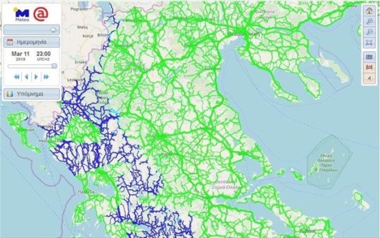 Πιο συγκεκριμένα, η υπηρεσία εξασφαλίζει στο χρήστη έναν οδικό χάρτη που απεικονίζει τα καιρικά φαινόμενα με χρώματα: