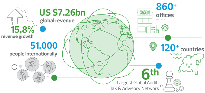 Βάσει της επίσημης έρευνας του International Accounting Bulletin (IAB), η RSM αποτελεί για το 2021 το 6ο μεγαλύτερο δίκτυο παγκοσμίως για υπηρεσίες Ορκωτών Ελεγκτών Λογιστών και Συμβούλων Επιχειρήσεων, με συνολικά έσοδα 7,26 δισ. δολάρια ΗΠΑ, τα οποία αυξήθηκαν κατά 15,8% σε σύγκριση με το 2020, περισσότερα από 860 γραφεία σε 123 χώρες και περισσότερους από 51.000 ανθρώπους να κάνουν πράξη το motto του δικτύου “The Power of Being Understood” παρέχοντας υπηρεσίες υψηλής ποιότητας.