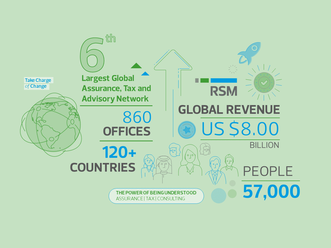 Με την αφοσίωσή της στην παροχή υψηλής ποιότητας ελεγκτικών, φορολογικών και συμβουλευτικών υπηρεσιών, η RSM διατήρησε τη θέση της στην παγκόσμια κατάταξη του κλάδου της, αντανακλώντας τη συνεχή ανάπτυξή της και τις εξαιρετικές επιδόσεις του δικτύου. Παράλληλα απέδειξε την ικανότητά της να μετασχηματίζεται για να περιηγείται αποτελεσματικά στο συνεχώς μεταβαλλόμενο επιχειρηματικό τοπίο της εποχής μας. Τη σημαντική θέση του δικτύου ενισχύει η δυναμική παρουσία σε 123 χώρες, μέσα από 860 γραφεία και συνολικά 57,000 συναδέλφους ανά τον κόσμο.