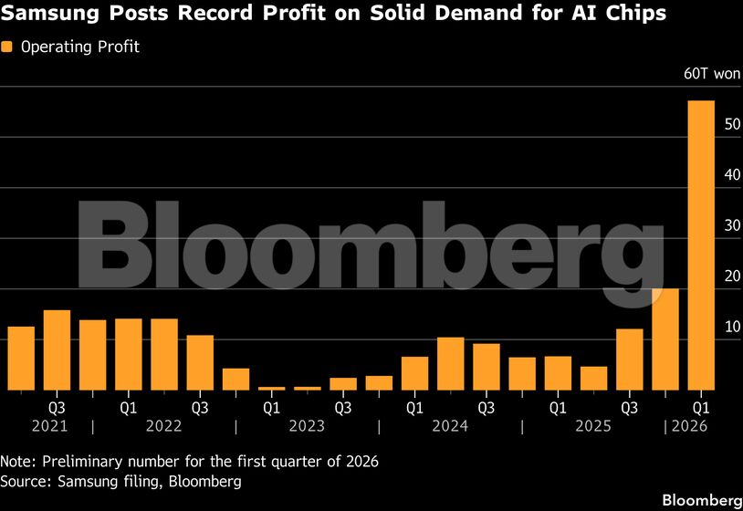 Η Samsung ανακοίνωσε προκαταρκτικά λειτουργικά κέρδη 57,2 τρισ. γουόν (37,9 δισ. δολάρια) για το πρώτο τρίμηνο — αύξηση 755% που συνιστά νέο ρεκόρ — έναντι μέσης πρόβλεψης αναλυτών για 39,3 τρισ. γουόν. Τα έσοδα ανήλθαν σε 133 τρισ. γουόν, ξεπερνώντας την εκτίμηση των 116,8 τρισ. γουόν. Τα πλήρη οικονομικά αποτελέσματα, συμπεριλαμβανομένων των καθαρών κερδών και της ανάλυσης ανά τομέα, θα δημοσιευθούν στις 30 Απριλίου.