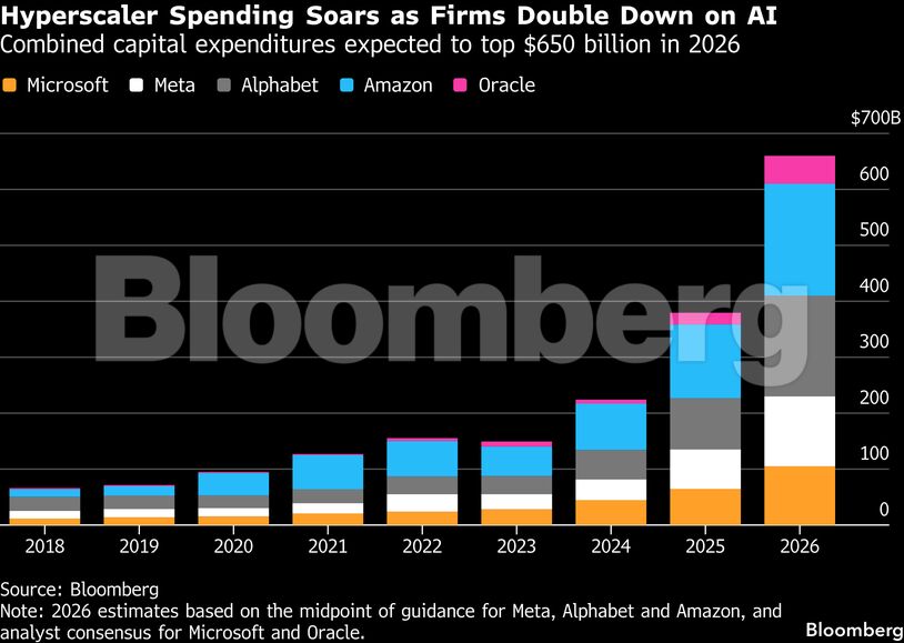 Παράλληλα, οι επενδύσεις των hyperscalers αυξάνονται ραγδαία, με τις συνολικές κεφαλαιουχικές δαπάνες να εκτιμάται ότι θα ξεπεράσουν τα 650 δισ. δολάρια το 2026, καθώς οι εταιρείες ενισχύουν περαιτέρω τη δέσμευσή τους στην τεχνητή νοημοσύνη.