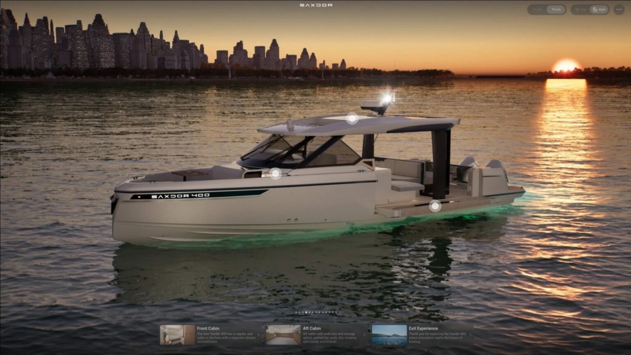 Επιπλέον, το Saxdor AI συνεχίζει να υποστηρίζει τους πελάτες και μετά την αγορά, βοηθώντας στην παράδοση, την επιβίβαση και την πλήρη αξιοποίηση του νέου τους σκάφους. Το Virtual Showroom προσφέρει μια φωτορεαλιστική εμπειρία, όπου πελάτες και αντιπρόσωποι μπορούν να εξερευνήσουν τον στόλο της Saxdor σε ένα εντυπωσιακό εικονικό περιβάλλον. Με λειτουργίες όπως εναλλαγή φωτισμού ημέρας και νύχτας, λεπτομερείς προβολές εσωτερικών και εξωτερικών χώρων και δυνατότητες διαμόρφωσης σε πραγματικό χρόνο, η εμπειρία γίνεται πιο ζωντανή και προσαρμοσμένη στις ανάγκες κάθε χρήστη.