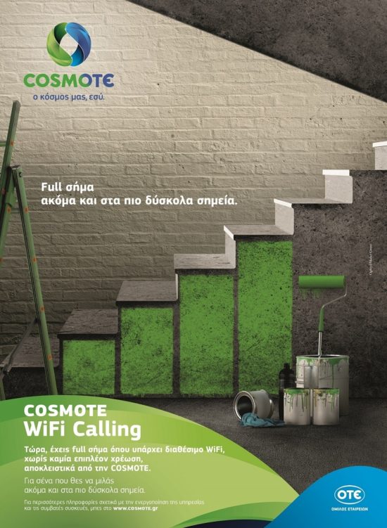 Ακόμα περισσότεροι πελάτες COSMOTE κινητής μπορούν να επικοινωνούν σε δύσκολα σημεία με ασθενές σήμα συνδυάζοντας 4G και WiFi, καθώς η δωρεάν αποκλειστική υπηρεσία COSMOTE WiFi Calling διατίθεται, πέρα από τους πελάτες συμβολαίου και στους πελάτες καρτοκινητής.