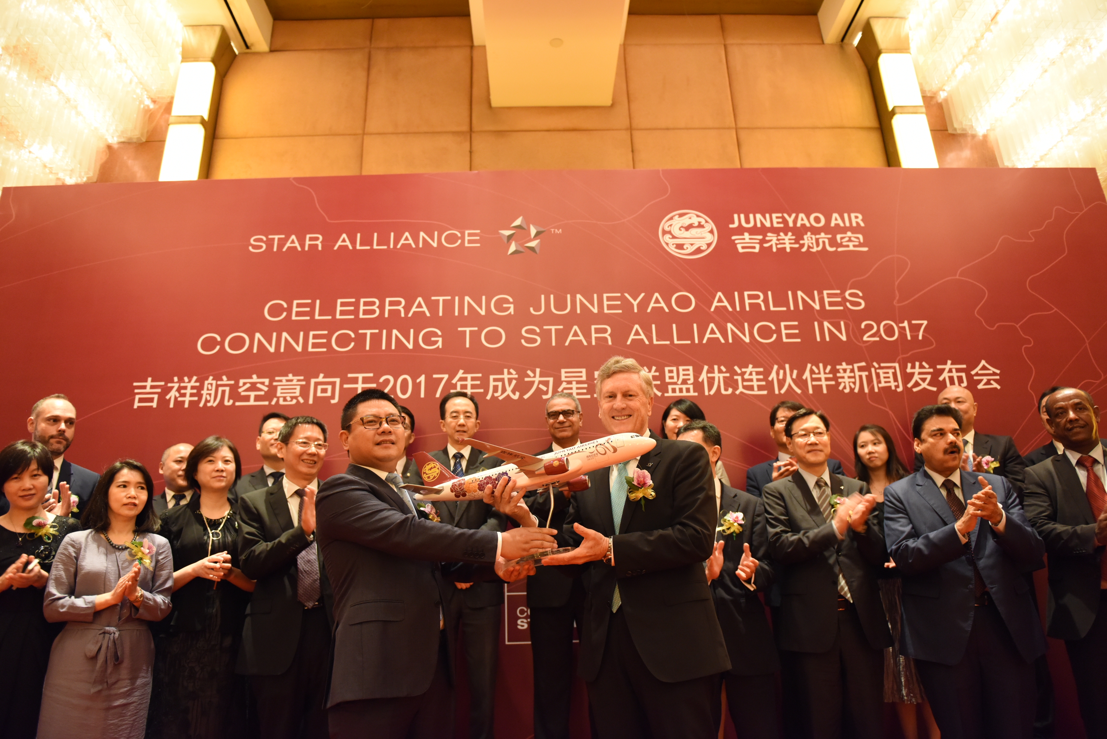 Σε εκδήλωση που πραγματοποιήθηκε σήμερα στη Σαγκάη, η Star Alliance και η Juneyao Airlines έκλεισαν επίσημα συμφωνία στρατηγικής συνεργασίας η οποία θα καταστήσει τον αερομεταφορέα με έδρα τη Σαγκάη, «Connecting Partner» της Star Alliance το 2017. Σύμφωνα με αυτήν την καινοτόμο ιδέα επιχειρηματικής συνεργασίας της Alliance, ο αερομεταφορέας θα ξεκινήσει σύντομα την προσφορά υπηρεσιών όπως through check-in, καθώς και πρόσβαση στους χώρους Lounge και άλλα προνόμια Priority σε επιλεγμένους επιβάτες που ταξιδεύουν σε δρομολόγια μέσω ανταπόκρισης με αερογραμμές – μέλη της Star Alliance.