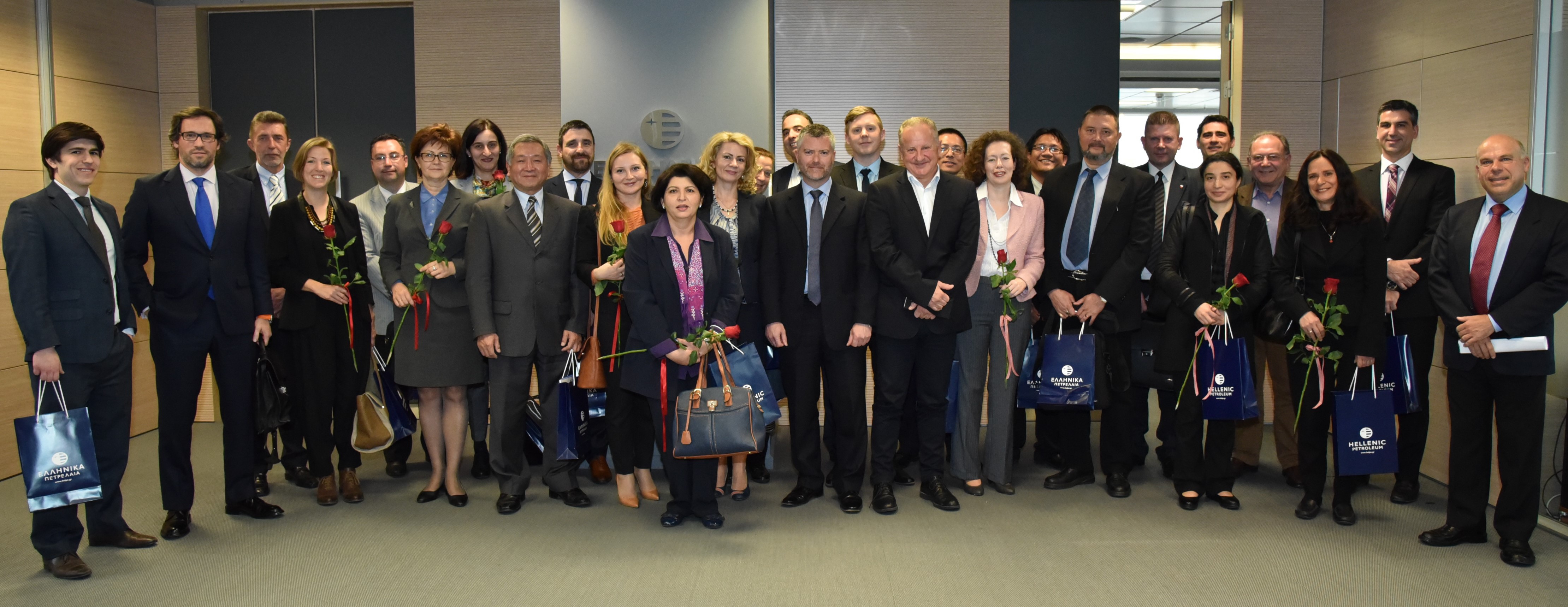 Οι συνολικά εικοσιοκτώ (28) Οικονομικοί και Εμπορικοί Διπλωμάτες από όλο τον κόσμο, τους οποίους συνόδευε η κα Βάσω Κύρκου ως υπεύθυνη του Διπλωματικού Club, έγιναν δεκτοί από τον Διευθύνοντα Σύμβουλο, Γρηγόρη Στεργιούλη, ο οποίος αναφέρθηκε στα θετικά οικονομικά αποτελέσματα του 2015 και στις επιτυχείς συμφωνίες που σύναψε η ΕΛΠΕ τον τελευταίο χρόνο, όπως εκείνη με το Ιράν.
