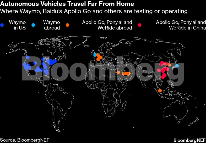 Η παγκόσμια ανάπτυξη των ρομποταξί επιταχύνεται, με κινεζικές εταιρείες όπως η Baidu και η Weride, καθώς και την Waymo της Alphabet, να βρίσκονται στην πρώτη γραμμή. Η Uber και η Weride έχουν εγκαινιάσει υπηρεσίες χωρίς οδηγό στο Άμπου Ντάμπι, με σχέδια επέκτασης στη Μέση Ανατολή. Η Baidu διεξάγει δοκιμές στο Άμπου Ντάμπι, στο Ντουμπάι και στην Ελβετία.