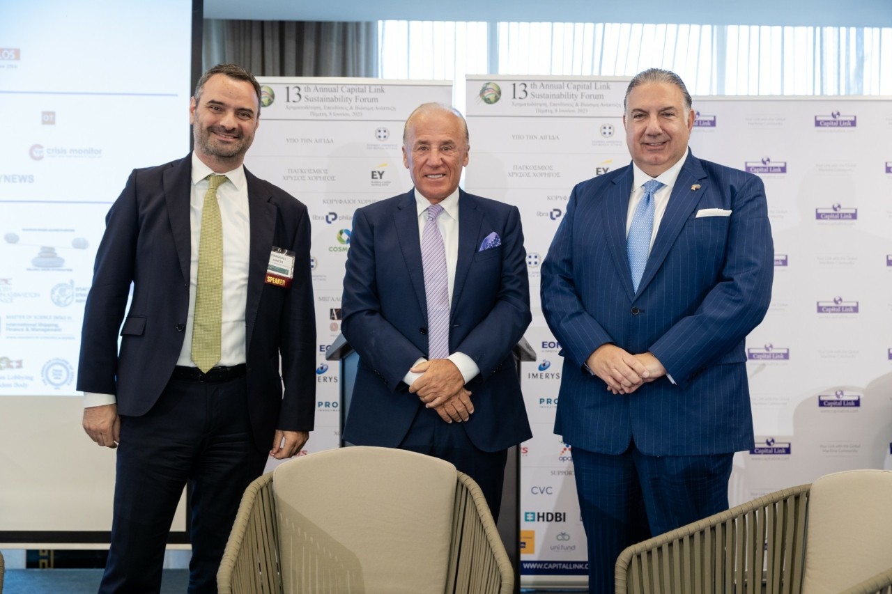 Οι Ελληνο-Αμερικανοί επιχειρηματίες, κ. C. Dean Metropoulos, Chairman & CEO – Metropoulos & Co, και κ. John Koudounis, President & Chief Executive Officer – Calamos Investments, συμμετείχαν στην ενότητα με τίτλο «Βιωσιμότητα – Ευκαιρία Δημιουργίας Μακροπρόθεσμης Αξίας» που πραγματοποιήθηκε στο πλαίσιο του 13ου Annual Capital Link Sustainability Forum: «Χρηματοδότηση, Επενδύσεις & Βιώσιμη Ανάπτυξη – Financing & Investments Spearheading Sustainable Growth», την Πέμπτη 8 Ιουνίου, 2023, στο Divani Caravel Hotel.