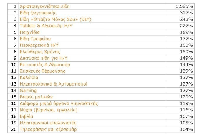 Ειδικότερα σημειώνεται σημαντική αύξηση σε: