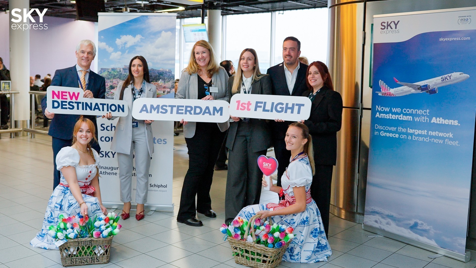 H SKY express συνεχίζοντας τη δυναμική ανάπτυξη του διεθνούς της δικτύου, ανακοινώνει την έναρξη της νέας απευθείας πτήσης από Αθήνα προς Άμστερνταμ. Η πρώτη πτήση πραγματοποιήθηκε την Κυριακή 10 Νοεμβρίου 2024, ενώ το πρόγραμμα περιλαμβάνει τέσσερα εβδομαδιαία δρομολόγια, κάθε Δευτέρα, Τετάρτη, Παρασκευή και Κυριακή, ενισχύοντας τη συνδεσιμότητα μεταξύ των δυο πόλεων.
