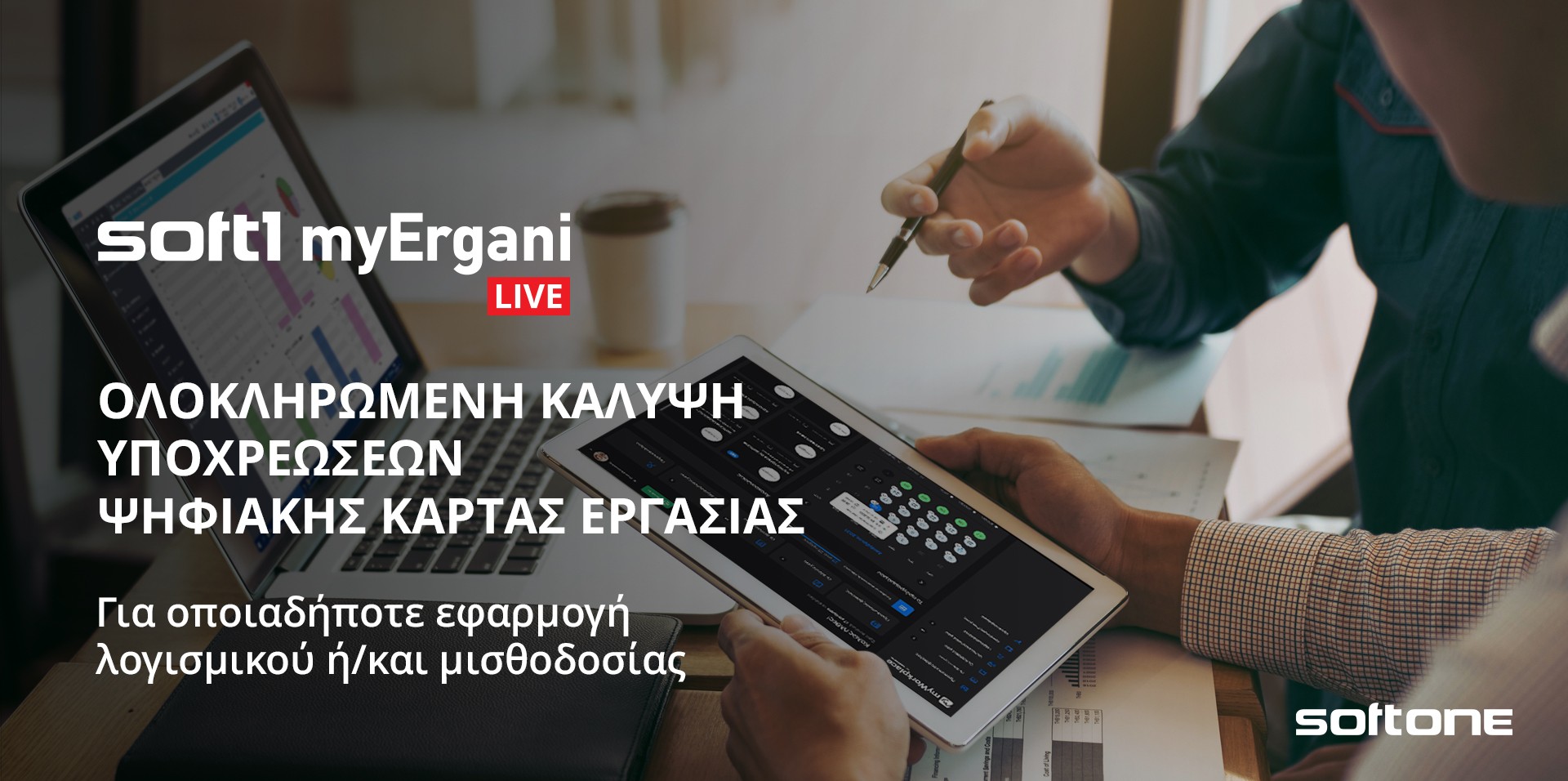Η νέα υπηρεσία myErgani LIVE ευθυγραμμίζεται πλήρως με τις διατάξεις της σχετικής νομοθεσίας, βοηθώντας τις επιχειρήσεις να ανταποκρίνονται εύκολα, έγκαιρα και έγκυρα, στις αυξημένες απαιτήσεις διαχείρισης που απορρέουν από την εφαρμογή της Ψηφιακής Κάρτας Εργασίας. Με ειδικό mobile application (QR scanner) αλλά και διασυνδεόμενη τόσο με την εφαρμογή “myWorkplace” της SoftOne όσο και με οποιοδήποτε σύστημα φυσικής ωρομέτρησης (BI Timer), η υπηρεσία myErgani LIVE προσαρμόζεται στις απαιτήσεις κάθε επιχείρησης, προσφέροντας πρακτικά πολλαπλούς τρόπους (αυτόματης) συλλογής και διαβίβασης των δεδομένων προσέλευσης και αποχώρησης των εργαζομένων της, στο πληροφοριακό σύστημα ΕΡΓΑΝΗ II.