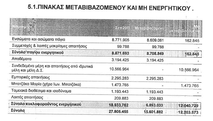 Στο μη μεταβιβαζόμενο ενεργητικό περιλαμβάνονται τα κτίρια και ο μηχανολογικός εξοπλισμός των εγκαταστάσεων στη Ριτσώνα, το περιβόητο lear jet αξίας 6 εκατ. ευρώ αλλά και οι απαιτήσεις περίπου 10,6 εκατ. ευρώ από μέλη του ΔΣ και συνδεδεμένα μέρη.