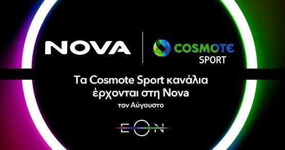 Από τη νέα σεζόν που ξεκινά τον Αύγουστο, οι συνδρομητές της Nova θα έχουν πρόσβαση σε ένα ασυναγώνιστο μπουκέτο αθλητικού περιεχομένου. Αυτό περιλαμβάνει όλα τα αθλητικά γεγονότα από τα κανάλια Novasports και Cosmote Sport – όλα μέσω της πλατφόρμας EON της Nova!