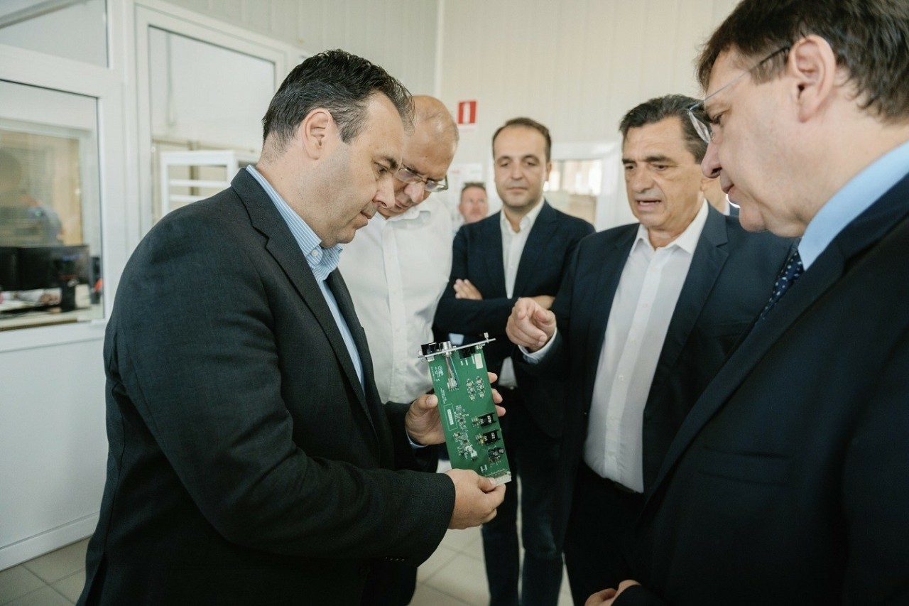 Στο Εργοστάσιο Παραγωγής Ηλεκτρονικών Κυκλωμάτων της Prisma Electronics στην Αλεξανδρούπολη, ο Υπουργός Ψηφιακής Διακυβέρνησης, κ. Δημήτρης Παπαστεργίου, συνοδευόμενος από τον Υφυπουργό Ψηφιακής Διακυβέρνησης, κ. Χρήστο Δερμεντζόπουλο, είχε την ευκαιρία να δει από κοντά τις ρομποτικές γραμμές παραγωγής, τον ειδικό καθαρό χώρο για εφαρμογές στο διάστημα, και να συνομιλήσει με τα στελέχη και το προσωπικό της εταιρείας.