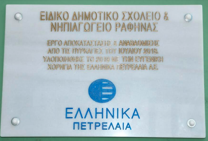 Με την ευγενική χορηγία του Ομίλου ΕΛΛΗΝΙΚΑ ΠΕΤΡΕΛΑΙΑ υλοποιήθηκαν οι εκτεταμένες εργασίες πλήρους αποκατάστασης των κτιρίων του Ειδικού Σχολικού Συγκροτήματος Ραφήνας τα οποία είχαν καταστραφεί από τη φονική πυρκαγιά του Ιουλίου 2018, αλλά και συνολικής ανακαίνισης και γενικότερης αναβάθμισης όλων των υποδομών και του περιβάλλοντος χώρου, όπου φιλοξενούνται περισσότερα από 80 παιδιά με ειδικές δεξιότητες.
