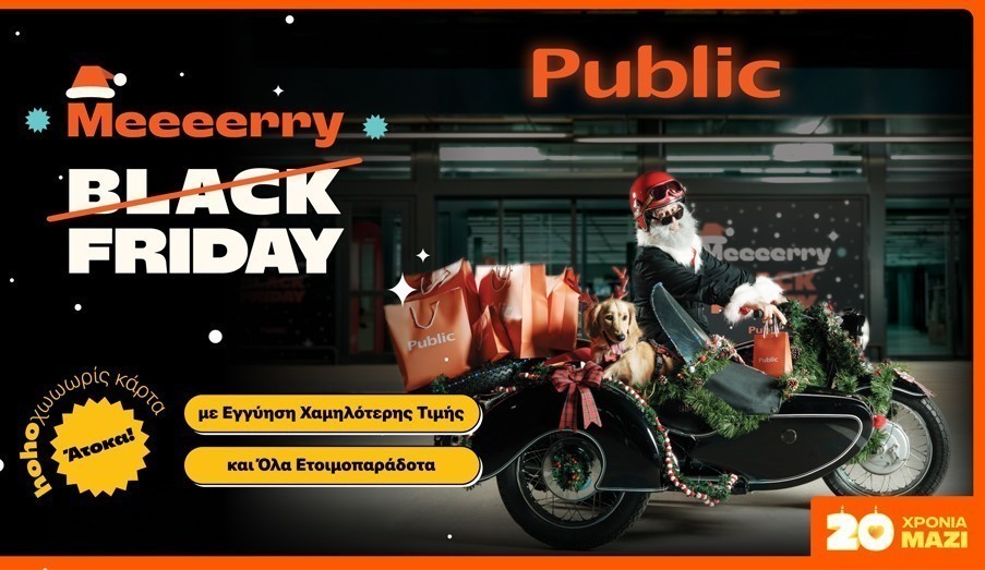 Η Black Friday πλησιάζει και τα Public παρουσιάζουν τη φετινή τους καμπάνια με μια ξεχωριστή προσέγγιση που αποτυπώνει την εξέλιξη των καταναλωτικών συνηθειών: το Merry Friday. Η καμπάνια βασίζεται σε δύο σημαντικά insights της αγοράς – ολοένα και περισσότεροι καταναλωτές αξιοποιούν τις Black Friday εκπτώσεις για να προμηθευτούν τα Χριστουγεννιάτικα τους δώρα για φίλους και αγαπημένους, συνδυάζοντας έξυπνες αγορές με έγκαιρο σχεδιασμό. Την ίδια στιγμή, η Black Friday παραμένει η περίοδος που οι καταναλωτές επιλέγουν να κάνουν ένα δώρο και στον εαυτό τους, επενδύοντας σε προϊόντα που πραγματικά επιθυμούν.